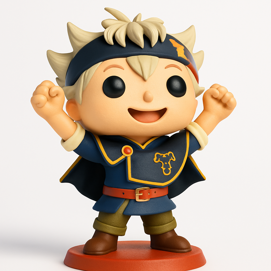 Celebrate magic with Asta! This vibrant chibi figure captures the Black Clover hero's iconic uniform & cheer. A must-print for anime fans.