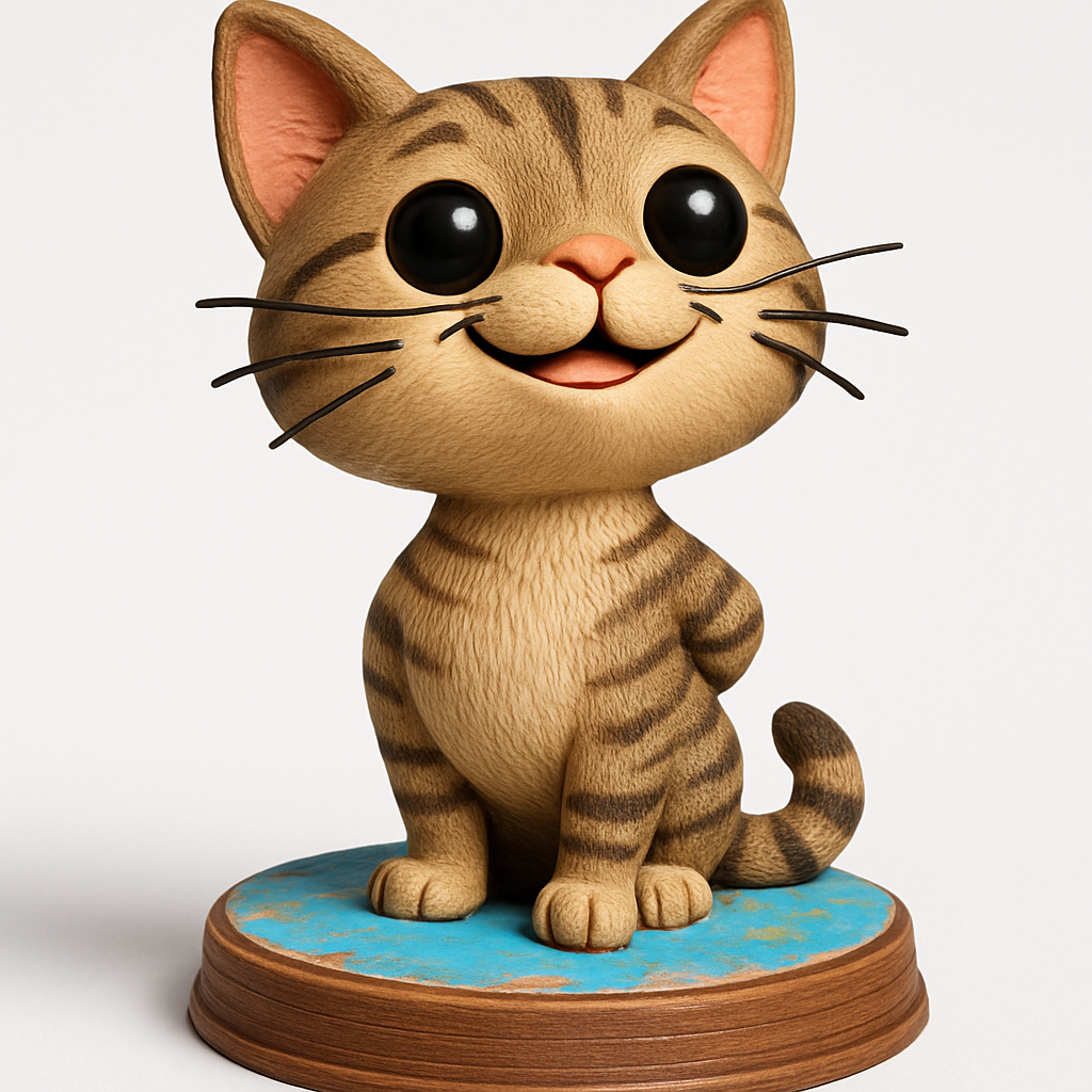 Print this charming tabby cat figurine, a delightful addition to any desk or shelf. Optimized for FDM printers, we recommend PLA or PETG for vibrant colors and a smooth finish. Print at 0.16-0.2mm layer height with 10-15% infill for a sturdy model. Minimal supports are advised for the chin and under the tail to ensure a clean result. Dimensions: Approximately 120mm (H) x 80mm (W) x 80mm (D). Features adorable big eyes, a warm smile, textured fur, and a rustic-style base. A purr-fect print for cat enthusiasts!