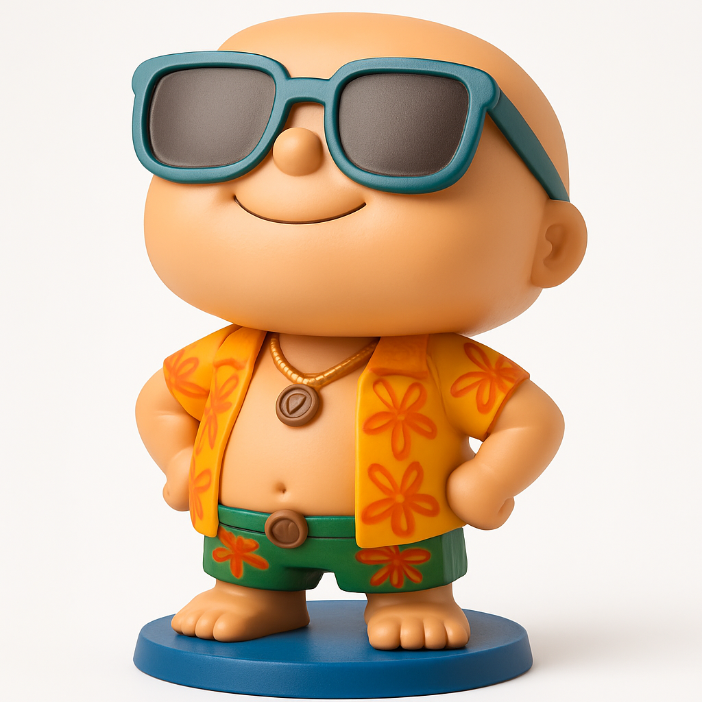 Bring sunshine to your space with this adorable, happy-go-lucky figurine! Features cool shades, a vibrant Hawaiian shirt, and a contagiously cheerful smile. Perfect desk decor!