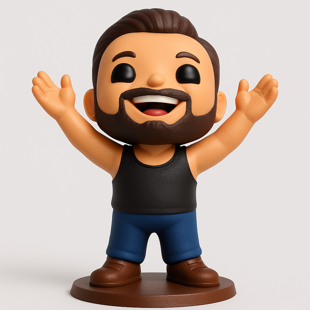Meet your new favorite desktop companion! This delightful bearded man figure waves hello with an infectious smile. A vibrant 3D print ready to brighten any room or collection.
