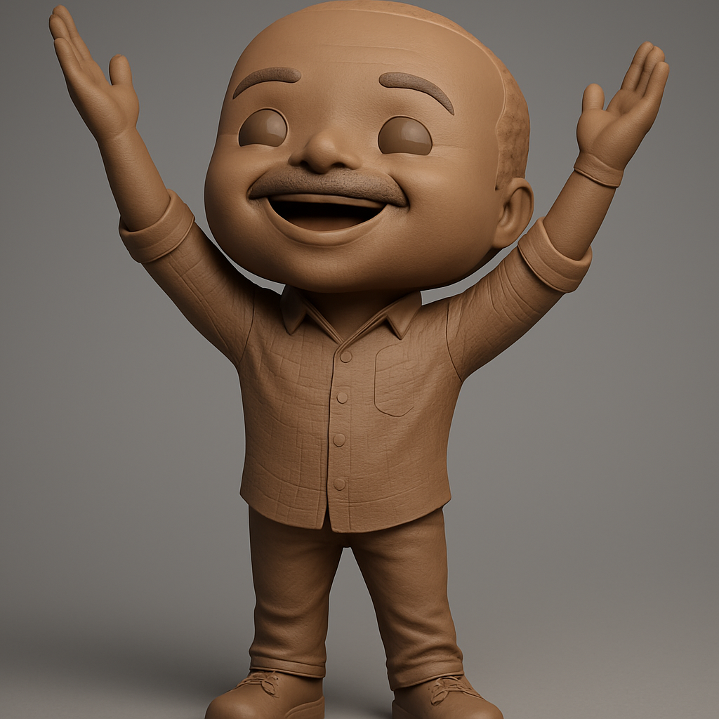 Capture pure joy with this delightful 3D print! A charismatic bald man, arms raised in triumph, ready to brighten your space. Easy to print!