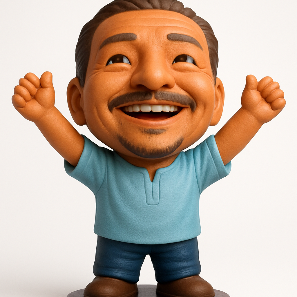 Bring a smile to your desk with this joyful chibi man figurine! Perfect for celebrating achievements or adding a touch of cheer to any space. Detailed, expressive design.