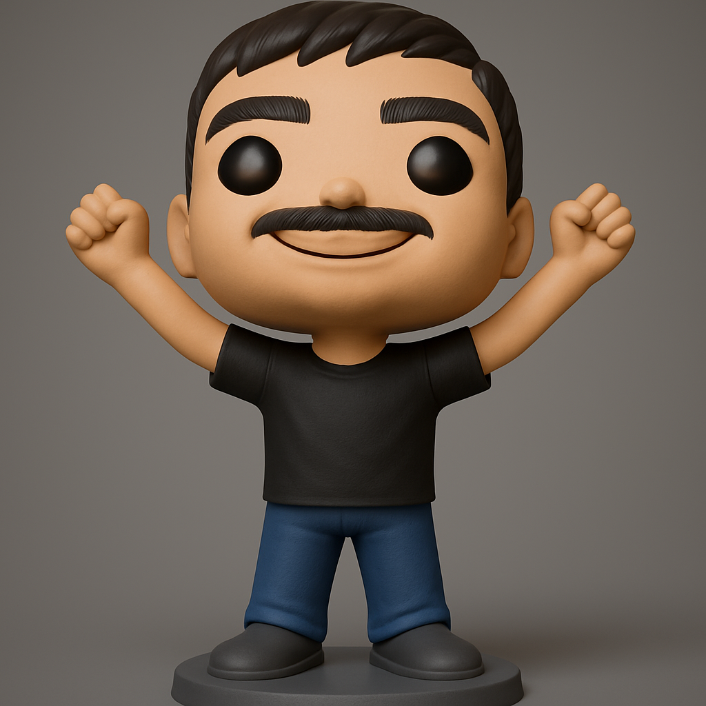 Bring triumph to your display! This charismatic, mustachioed pop-style figure, striking a joyful pose, is perfect for celebrating victories. A fun, easy print for any collector.