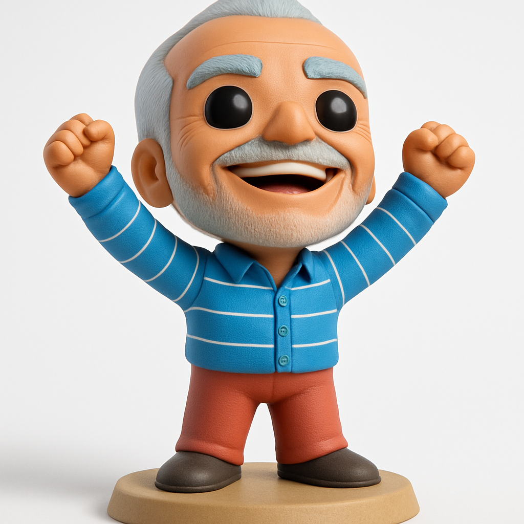 Print this vibrant, cheerful senior figure to brighten your day! Optimized for FDM printers. Recommended for PLA or PETG. Use 0.2mm layer height for good detail and print speed. A 10-15% infill is sufficient for strength. Supports are essential for the raised arms, chin, and beard overhangs. Print at 100% scale for a height of approximately 140mm. This collectible-style figurine features a wide, happy smile and a victorious pose, making it a perfect gift or desk companion.