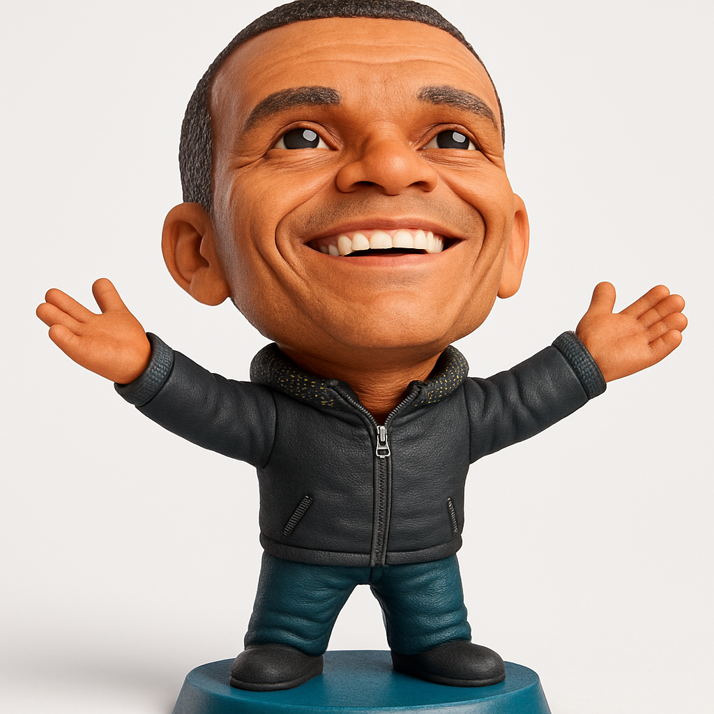 Print this charismatic bobblehead, radiating pure joy with its broad smile and open arms. A delightful desk companion or gift.