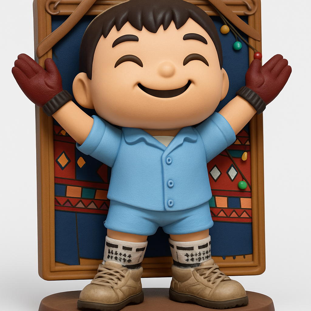 This delightful 'Joyful Explorer' figurine is optimized for FDM printing. We recommend PLA or PETG for best results. Print at 0.16-0.2mm layer height with 10-15% infill (gyroid). Supports are advised for the outstretched arms, chin, and decorative elements on the backdrop. Approximate dimensions: 180mm H x 120mm W x 80mm D. Features include a detailed character with expressive face, cozy gloves, unique patterned socks, and a charming framed backdrop with string lights, perfect for adding cheer to any space. Consider multi-color printing for stunning visual impact or post-processing for custom paint jobs.