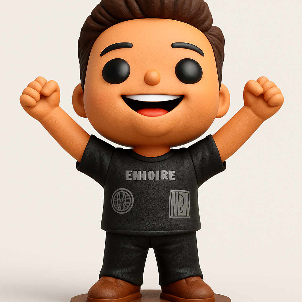 This charming Pop-style figure captures a moment of pure joy, perfect for display. Designed for FDM printing with PLA or PETG. Recommend 0.15-0.2mm layer height and 10-15% infill. Minor supports might be beneficial for arms and chin overhangs. Model stands approximately 120mm tall but can be scaled. Features a smooth, friendly aesthetic and space for personalized details on the shirt, making it a versatile collectible.