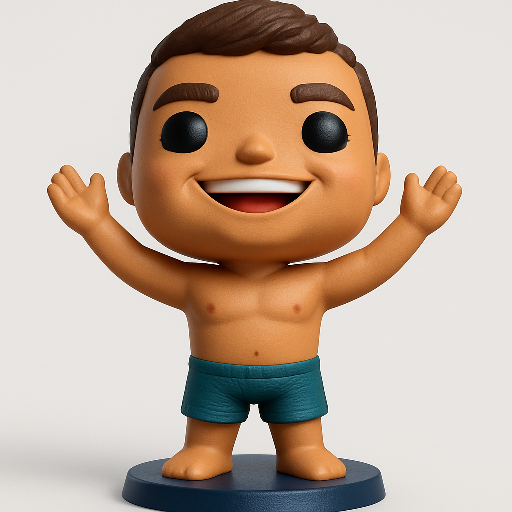 Meet your new desk buddy! This Funko-style swimmer figurine beams happiness. Simple to print, a fantastic collectible for fans of cheerful 3D prints!