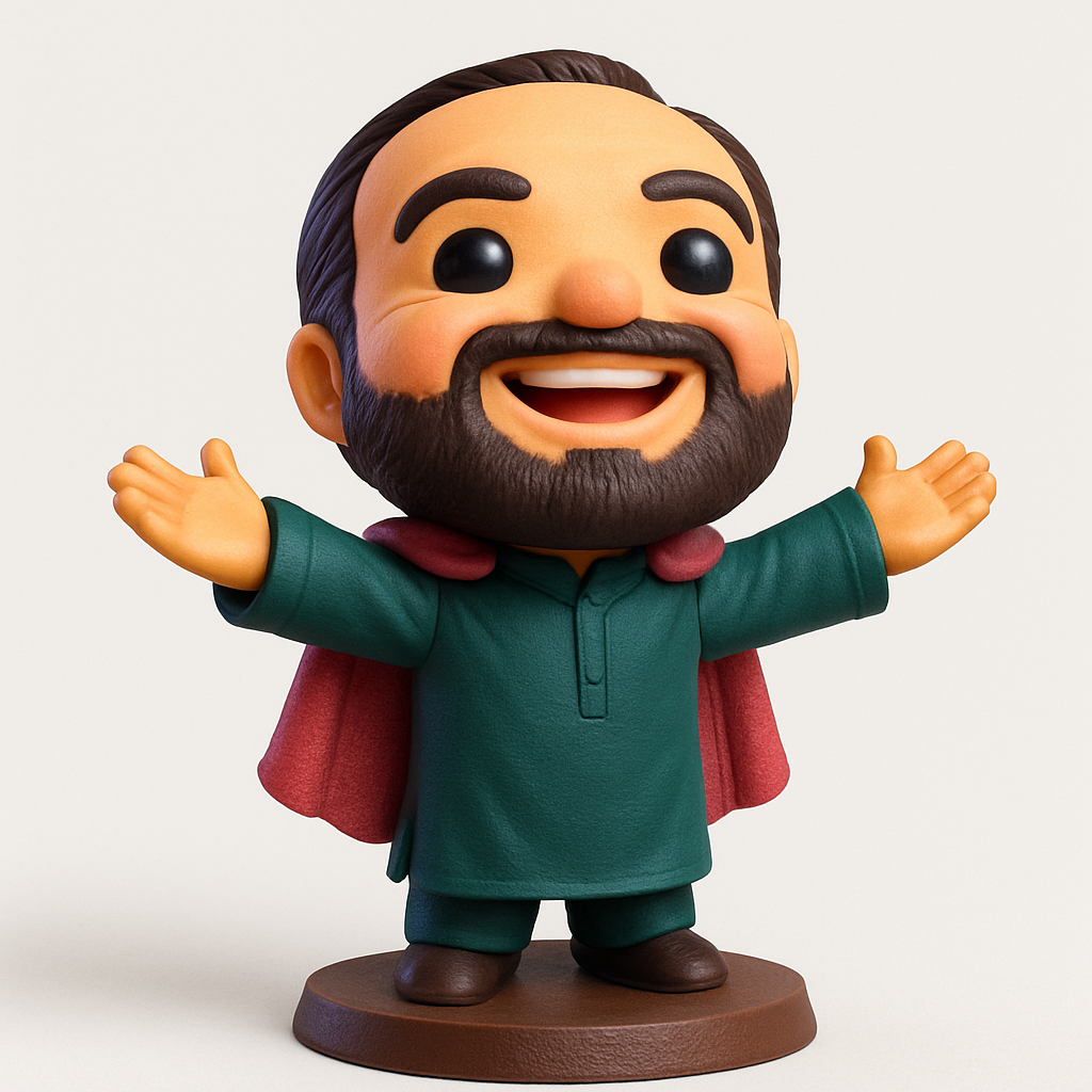 Print this delightful bearded superhero figurine to add a touch of heroism and joy to your space! Optimized for FDM printing. Recommended PLA or PETG for vibrant colors and detail. Use 0.16-0.2mm layer height and 10-15% infill for a balanced print. Supports are advisable for the outstretched arms, under the chin, and cape overhang for best results. This model stands approximately 14 cm tall at 100% scale but can be easily resized. Features a dynamic pose, detailed kurta, and a vibrant cape. A fun, easy print for all skill levels!