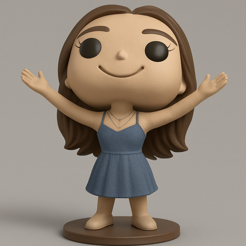 Print this delightful Funko-style girl figurine. Ideal for FDM printing with PLA or PETG. Recommend 0.16-0.2mm layer height and 10-15% infill. Supports are essential for arms, chin, and dress overhangs; tree supports are advised for clean removal. Model features a friendly smile, layered necklace, and textured dress. Approx. 10-12 cm tall, but scalable. A perfect personalized gift or desk companion!