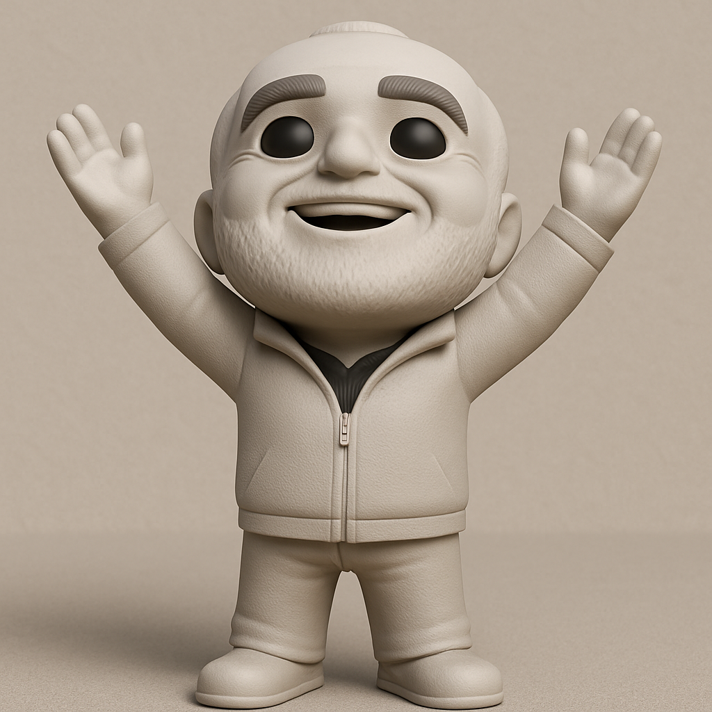 Print this cheerful bearded man figurine, perfect for desks or shelves! Recommended FDM printing with PLA or PETG. For best results, use a 0.16mm-0.2mm layer height and 10-15% infill. Supports are advised for the chin, arms, and jacket underhangs. Model is designed at approx. 120mm tall but is easily scalable. Features a wide, happy smile, textured beard, and detailed zip-up jacket, capturing a moment of pure joy. An excellent collectible for gifting or personal display.