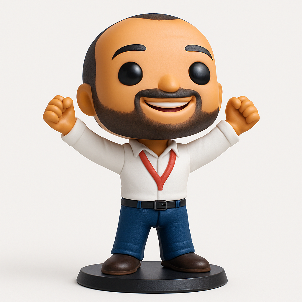 Print this cheerful Funko-style figure to inspire your workspace! Optimized for FDM printing with PLA or PETG. We recommend a layer height of 0.16mm-0.2mm and 15-20% infill for a good balance of detail and strength. Supports are crucial for clean results under the raised arms, chin, and the large head's overhangs. The model is approximately 14 cm tall at 100% scale but can be resized. Standout features include the iconic pose of triumph, a friendly bearded face, crisp business attire with a red detail, and a sturdy base. Multi-color printing or post-painting will bring out its best.