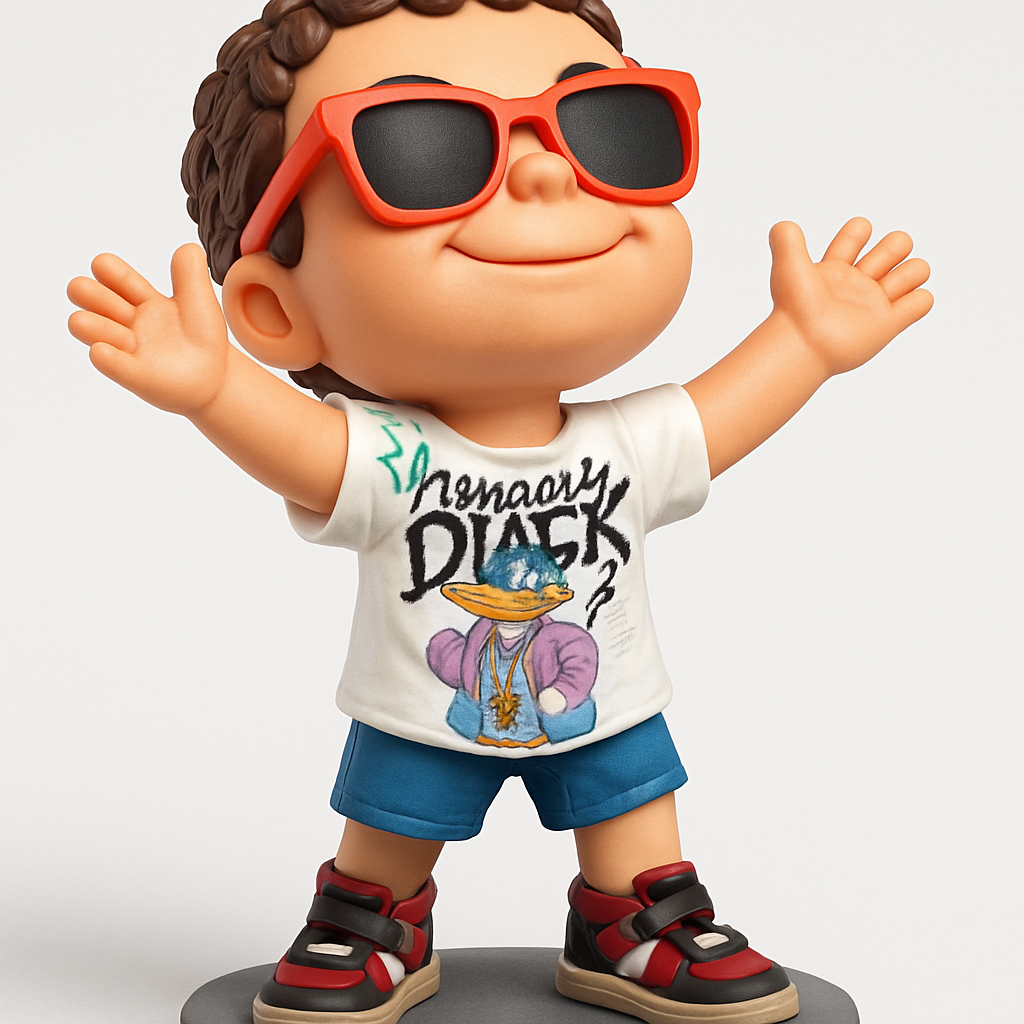 Bring a smile to any space with this vibrant, stylish boy figurine! Featuring cool shades and a unique duck tee, it's a must-print for character enthusiasts.