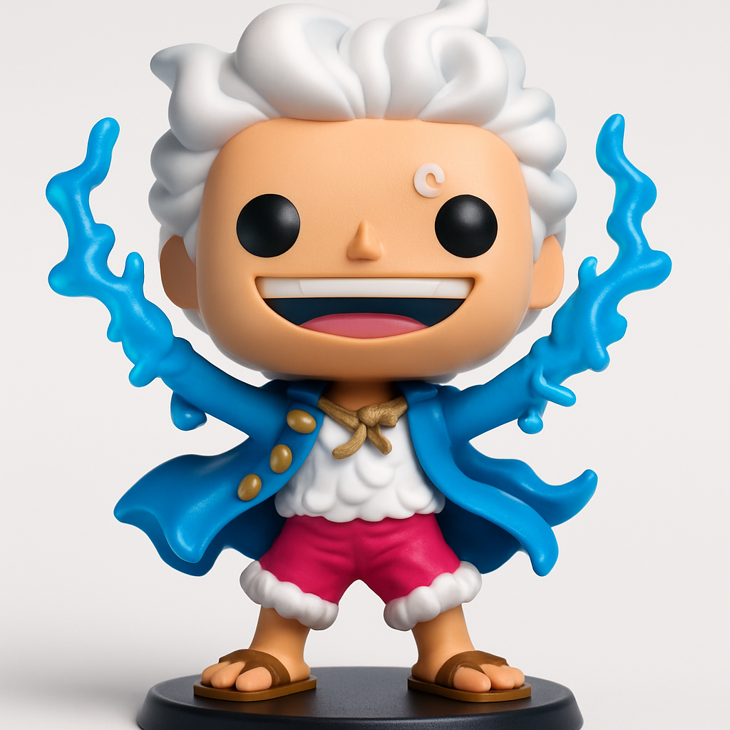 Bring the legendary Sun God Nika, Monkey D. Luffy's Gear 5, to life! This vibrant Funko Pop-style 3D model features his iconic white hair, dynamic pose, and lightning effects.