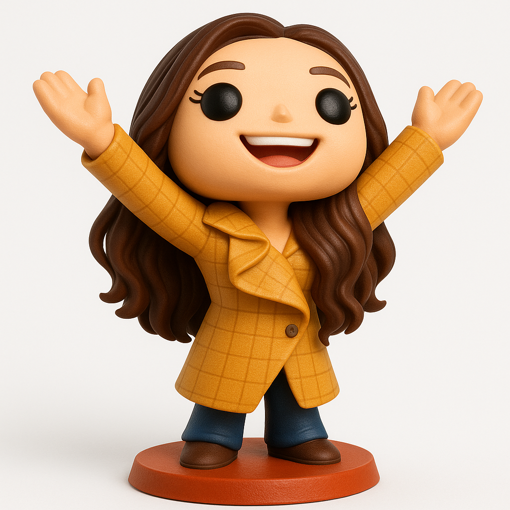 This charming stylized figurine depicts a cheerful character with long wavy hair, a plaid coat, and outstretched arms, standing on an integrated round base. Ideal for FDM printing with PLA or PETG. Recommended layer height: 0.2mm for general prints, or 0.12mm for finer detail on the face and hair. Use 10-15% infill. Tree supports are advised for under the arms, chin, and any significant hair overhangs to ensure clean details. Model is approx. 120mm (H) x 80mm (W) x 60mm (D) at default scale but can be resized. Features a vibrant, happy expression and textured clothing.