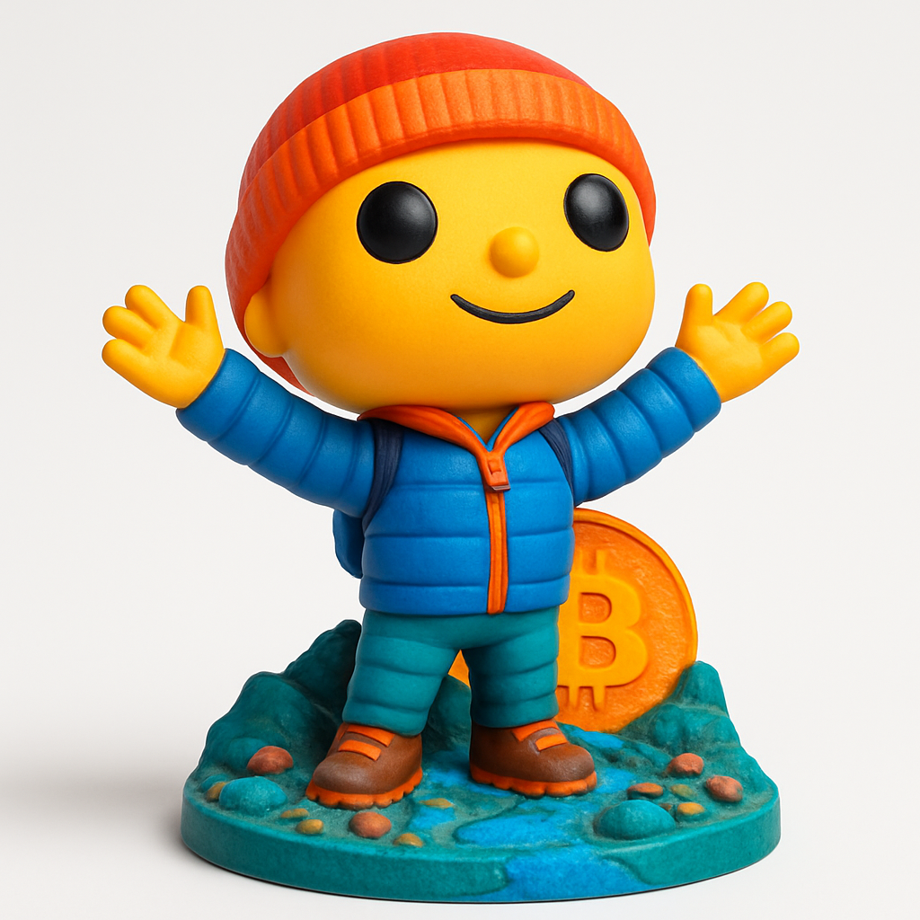 Print this spirited Bitcoin adventurer in vibrant PLA or PETG. Recommended settings: 0.16-0.2mm layer height, 10-15% infill. Supports (e.g., tree supports) are advised for arms, chin, and base overhangs for a clean finish. Model dimensions (approx): 120mm H x 80mm W x 80mm D. Ideal for multi-color printing or post-print painting to capture its distinct features like the orange beanie, blue jacket, and iconic Bitcoin symbol. A great desk companion!