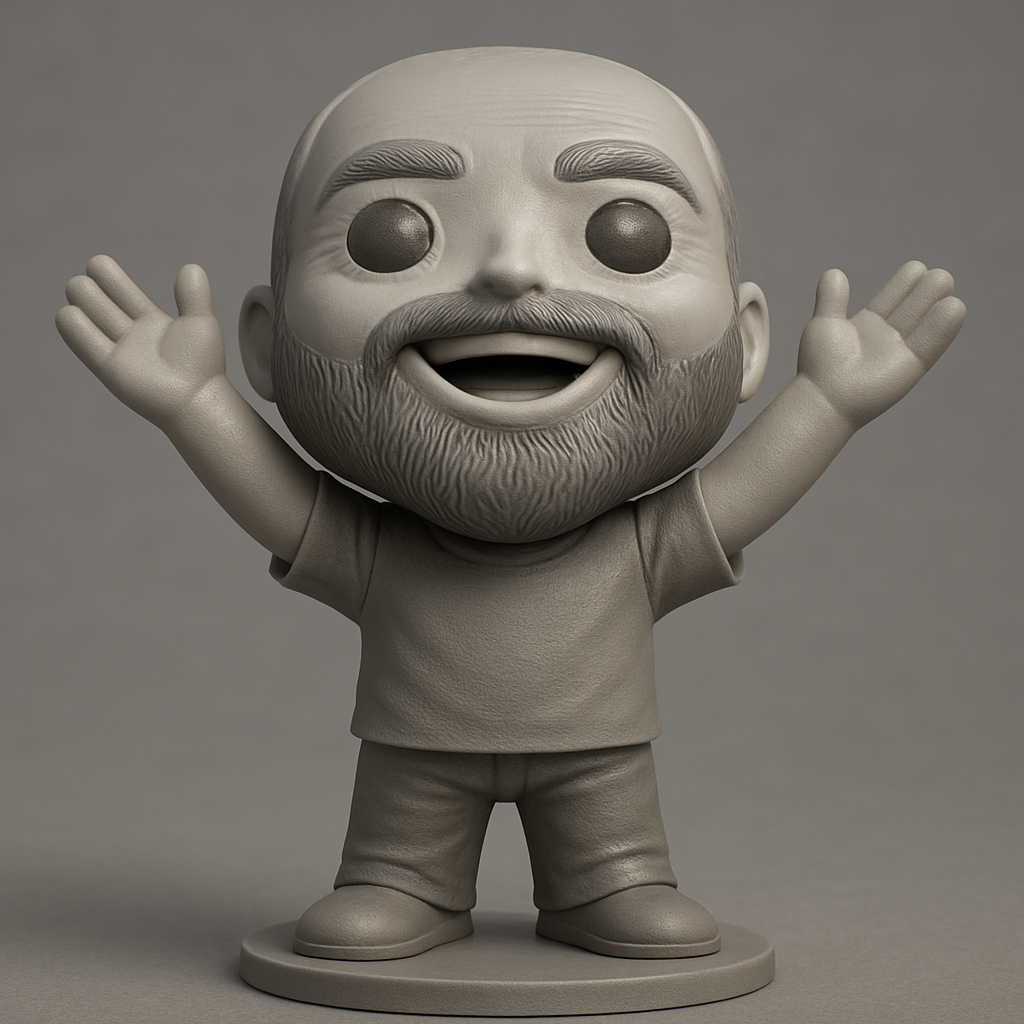 Print this expressive bearded character for a cheerful desk companion! Optimized for FDM printing with PLA or PETG. Recommended settings: 0.16mm-0.2mm layer height, 10-15% infill. Supports recommended for the chin, beard, and arm overhangs to ensure clean details. Model measures approximately 120mm tall on its base. Enjoy the detailed beard texture, wide smile, and welcoming pose. Perfect for painting and personalization!