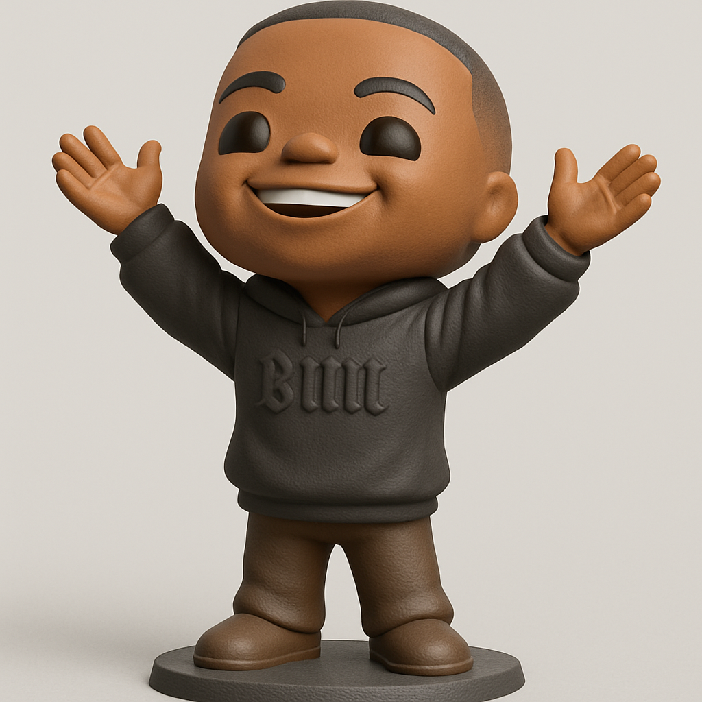 Capture pure joy with this charming 3D printable figurine! Features a welcoming pose, detailed 'BMll' hoodie, and a heartwarming smile. A perfect desk buddy or gift.