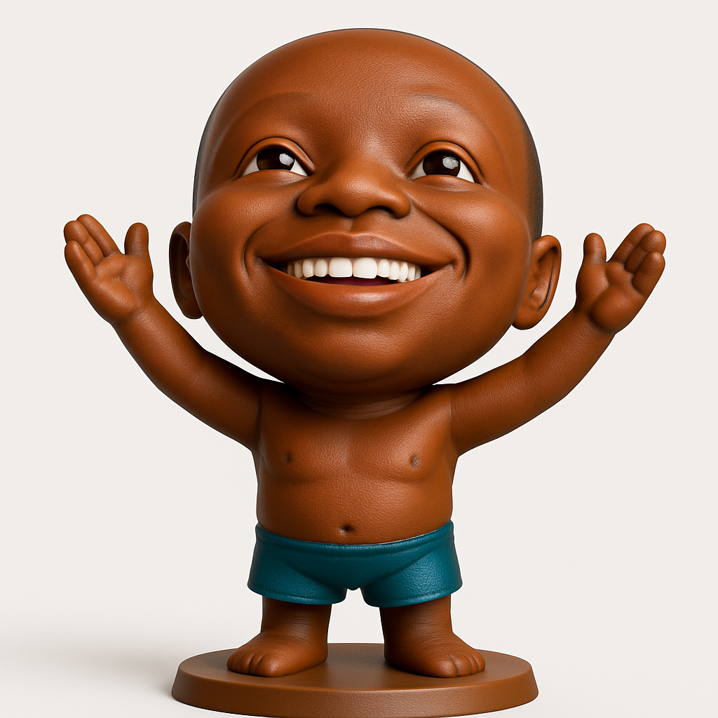 This delightful FDM-printable bobblehead captures pure joy! Recommended materials: PLA or PETG. Print at 0.16-0.2mm layer height for optimal detail. 10-15% infill (e.g., cubic) should be sufficient. Supports are advisable for the chin, armpits, and underneath the raised arms. The model is approximately 12-15cm tall (scalable). Features a charming, wide-smiling face, large expressive eyes, and arms outstretched in a welcoming gesture. The smooth, stylized design makes it a fun print and an uplifting display piece for any space.