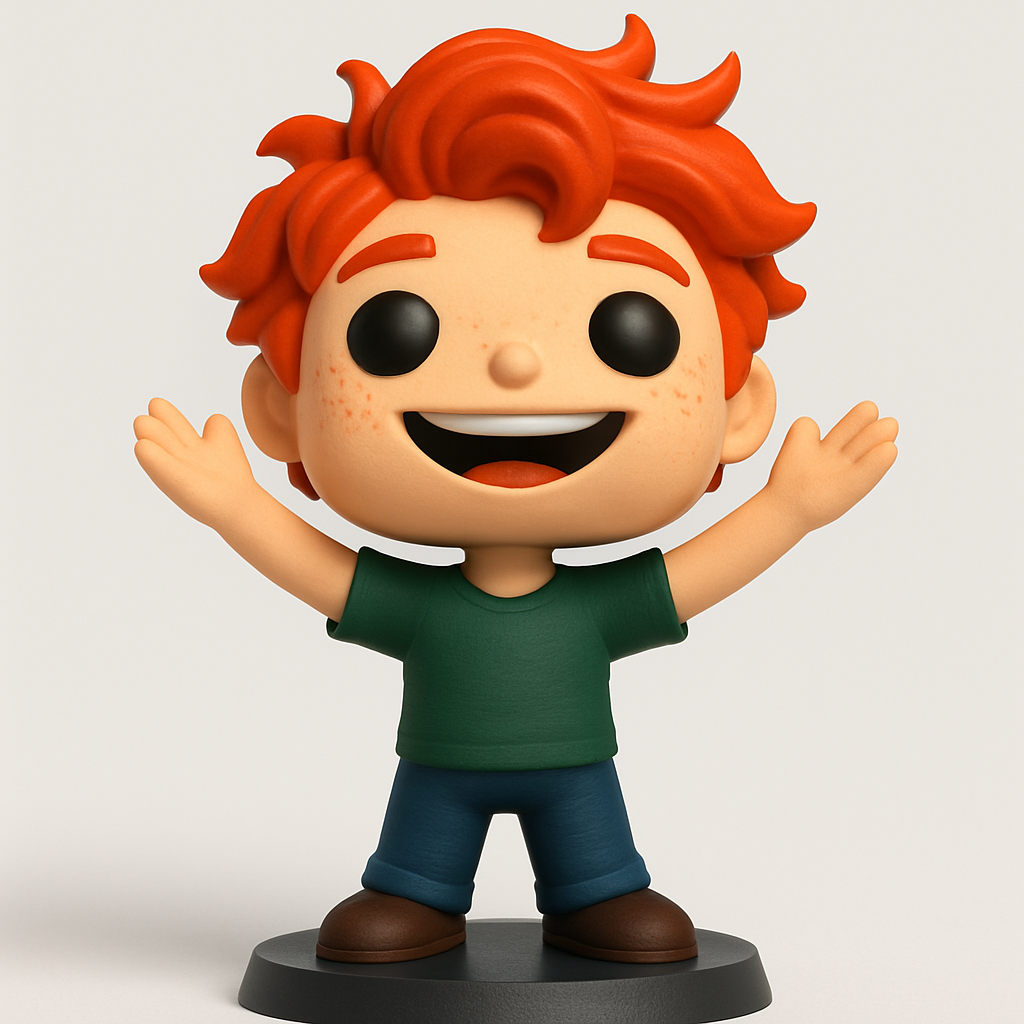 This charming Funko-style redhead figure is designed for FDM printing. Recommend PLA or PETG for vibrant colors and a smooth finish. Print at 0.16mm-0.2mm layer height with 10-15% infill. Supports are advised for the chin, mouth, and underside of the arms for best results. The model is scaled to approximately 12cm tall but is fully scalable to your desired size. Features include a cheerful expression, textured hair, cute freckles, and a stable integrated base, making it a perfect desk companion or gift.