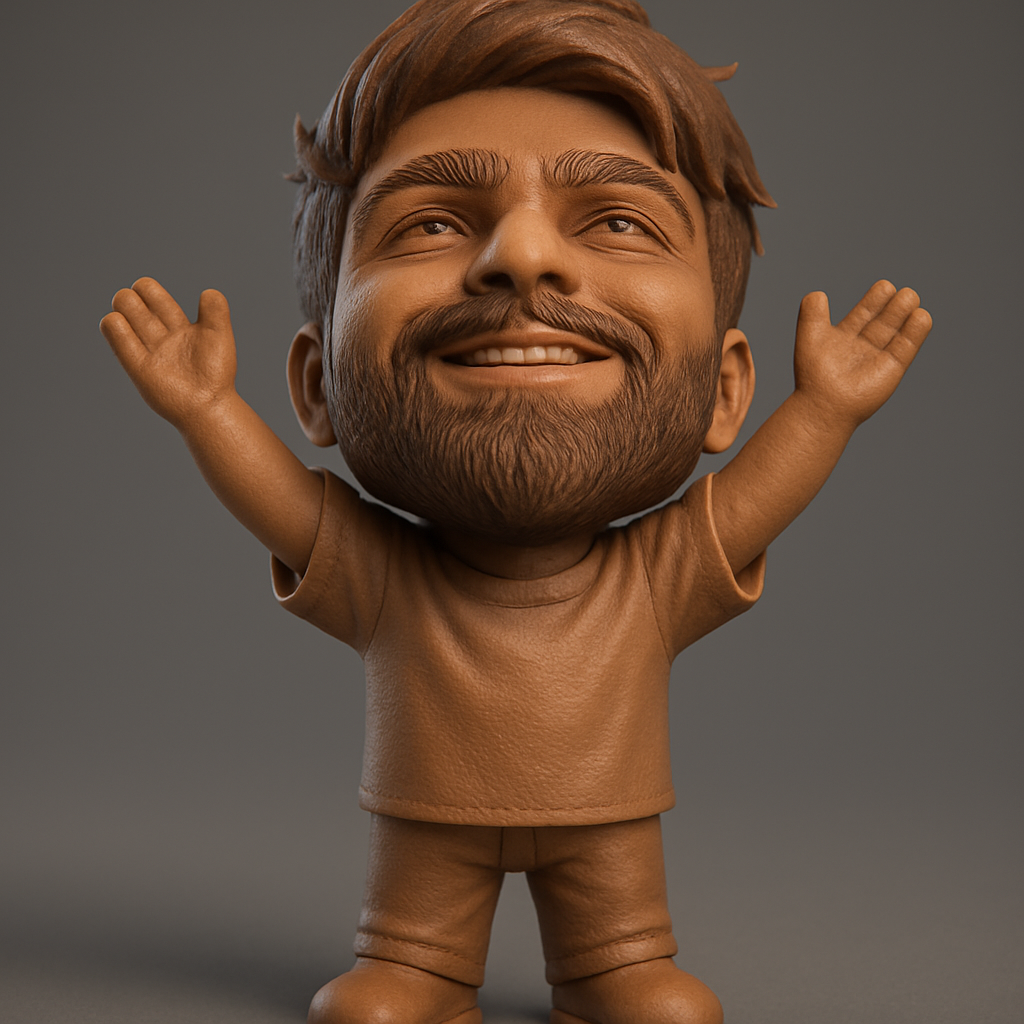This charming 'Happy Guy' figurine is optimized for FDM printing with PLA or PETG. Standing approximately 120mm tall, it features a highly detailed beard, expressive eyes, and dynamic hair, all captured in a cheerful, arms-raised pose. For best results, print at a 0.16mm - 0.2mm layer height with 10-15% infill. Minor supports may be beneficial for the chin and underarms, depending on orientation. Its robust design ensures easy printing and durability, making it a perfect desk companion to brighten your day.