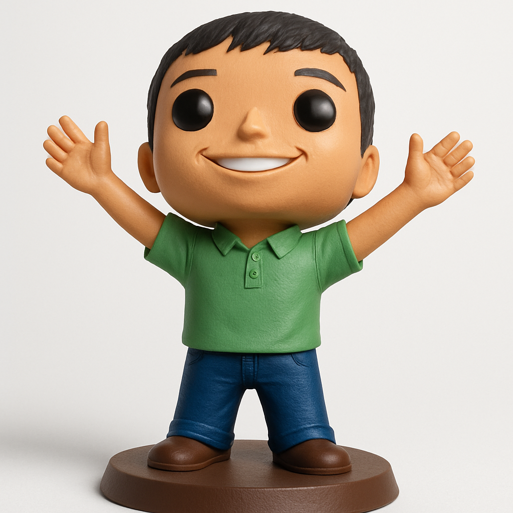 Print this charming Funko-style figure in PLA or PETG for vibrant results. Recommended layer height: 0.2mm, infill: 15-20%. Supports needed for arms and chin overhangs. Designed for easy FDM printing, allowing multi-color printing by separating parts (head, body, base) for a paint-free finish. Stands approximately 120mm tall at default scale, but is easily scalable to your preference. A perfect desk companion or unique gift.