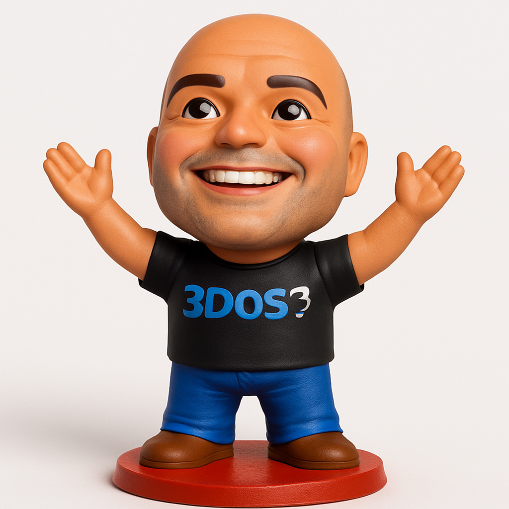 Print this cheerful 3DOS3 bobblehead! Recommended for FDM using PLA or PETG. Optimal layer height: 0.2mm, infill: 15-20%. Supports are advised for the outstretched arms and under the chin. The model is designed for multi-part printing, allowing for easy color separation (skin, shirt, pants, shoes, base, logo). Approximate dimensions: 150mm height, 80mm width, 80mm depth. A fantastic desk companion or gift, featuring an iconic smile and the prominent 3DOS3 logo.